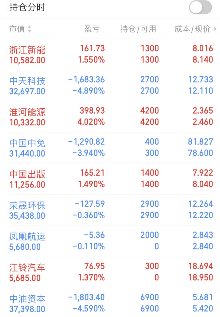 持仓股伴随大盘做情绪震荡,所以只能根据当天情绪转化做些小仓位的T操作,暂时找不到什么好的买点。