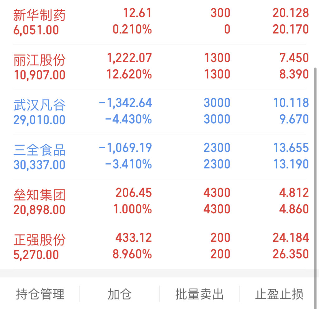 再有就是面对一周的个股跌多涨少的前三天普跌行情,感受到较强的情绪反弹需求,所以在手里现有仓位没有买点的情况下,散哥今天又开了2个新仓,在保证短线炒作利润的同时也最大程度的维持住现有仓位。