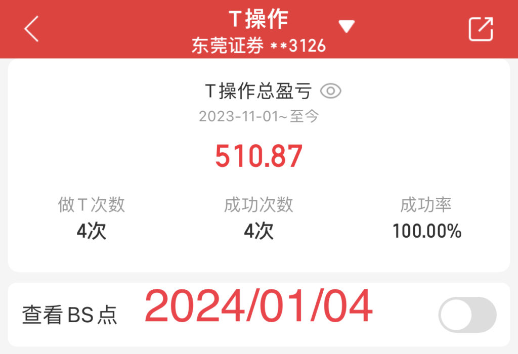截止当日,散哥累计完成做T 3次,实现投资收益510元。