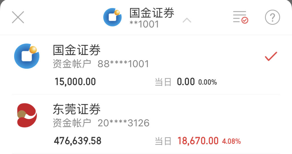 账户总资产491639元,累计入金500000元,当日浮盈18670元,累计浮亏8361元;账户目前持有市值432546元,持有股票18只,具体账户信息如图所示: