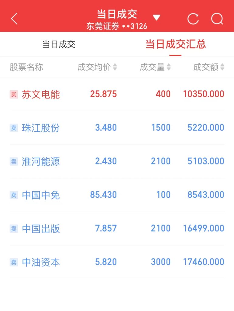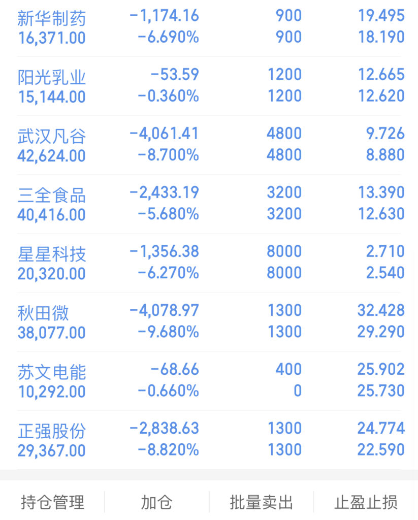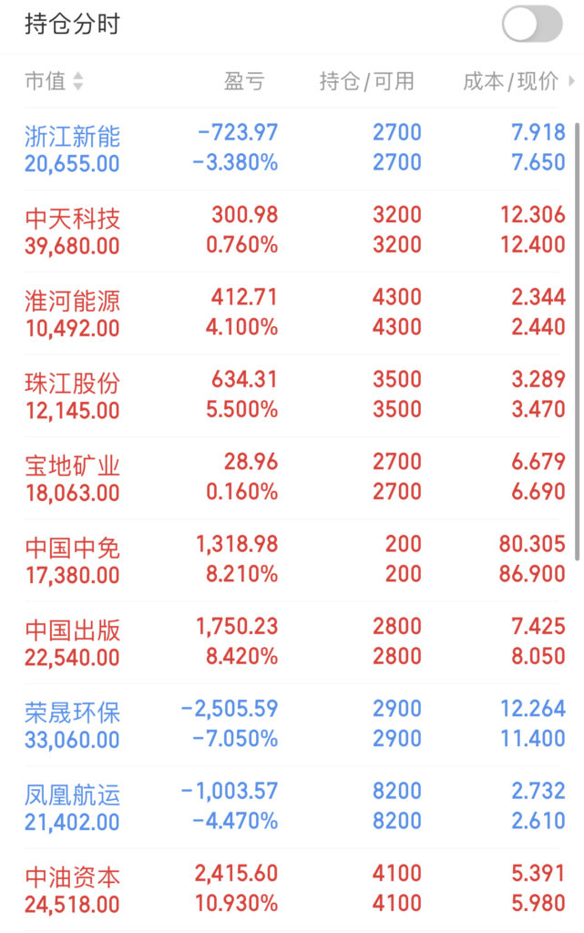 当日账户持有三全食品、中油资本、荣晟环保、中国中免、中天科技、浙江新能、武汉凡谷、淮河能源、中国出版、正强股份、凤凰航运、新华制药、珠江股份、秋田微、星星科技、阳光乳业、宝地矿业、苏文电能等18只股。