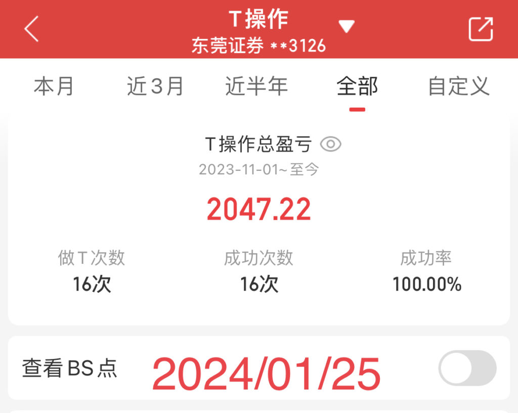 截止当日,散哥累计完成做T操作16次,实现投资收益2073元。