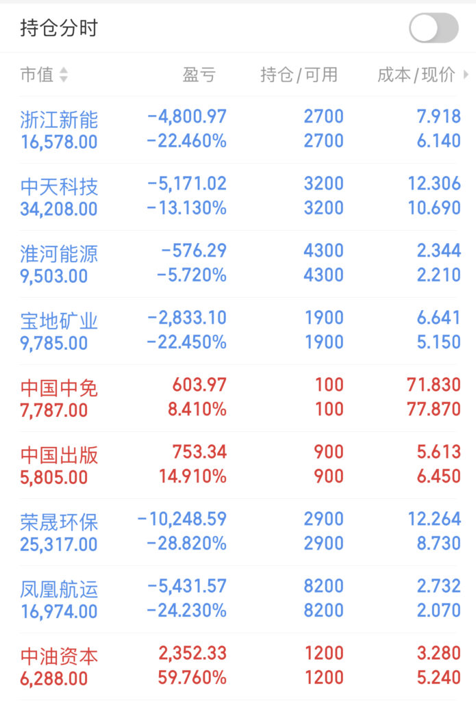 当日账户持有三全食品、中油资本、荣晟环保、中国中免、中天科技、浙江新能、武汉凡谷、淮河能源、中国出版、正强股份、凤凰航运、新华制药、秋田微、星星科技、阳光乳业、宝地矿业、苏文电能、德昌股份等18只股。
