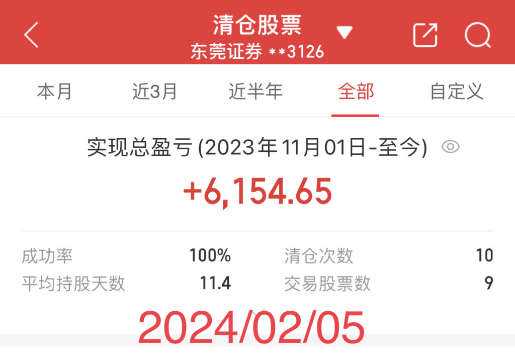 截止当日,散哥累计完成清仓10次,累计实现投资收益6154元,清仓胜率100%。