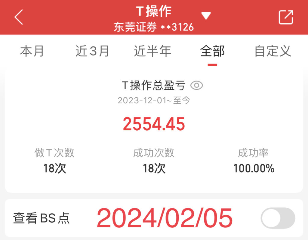 截止当日,散哥累计完成做T操作18次,实现投资收益2554元。